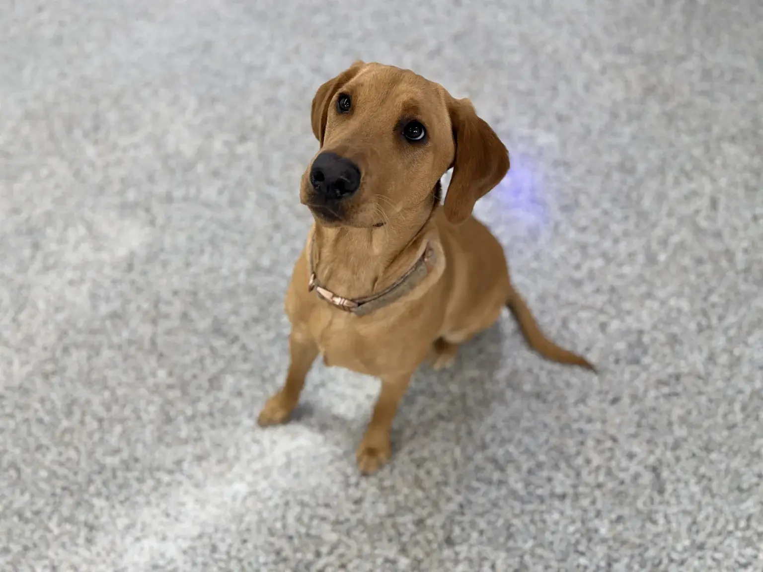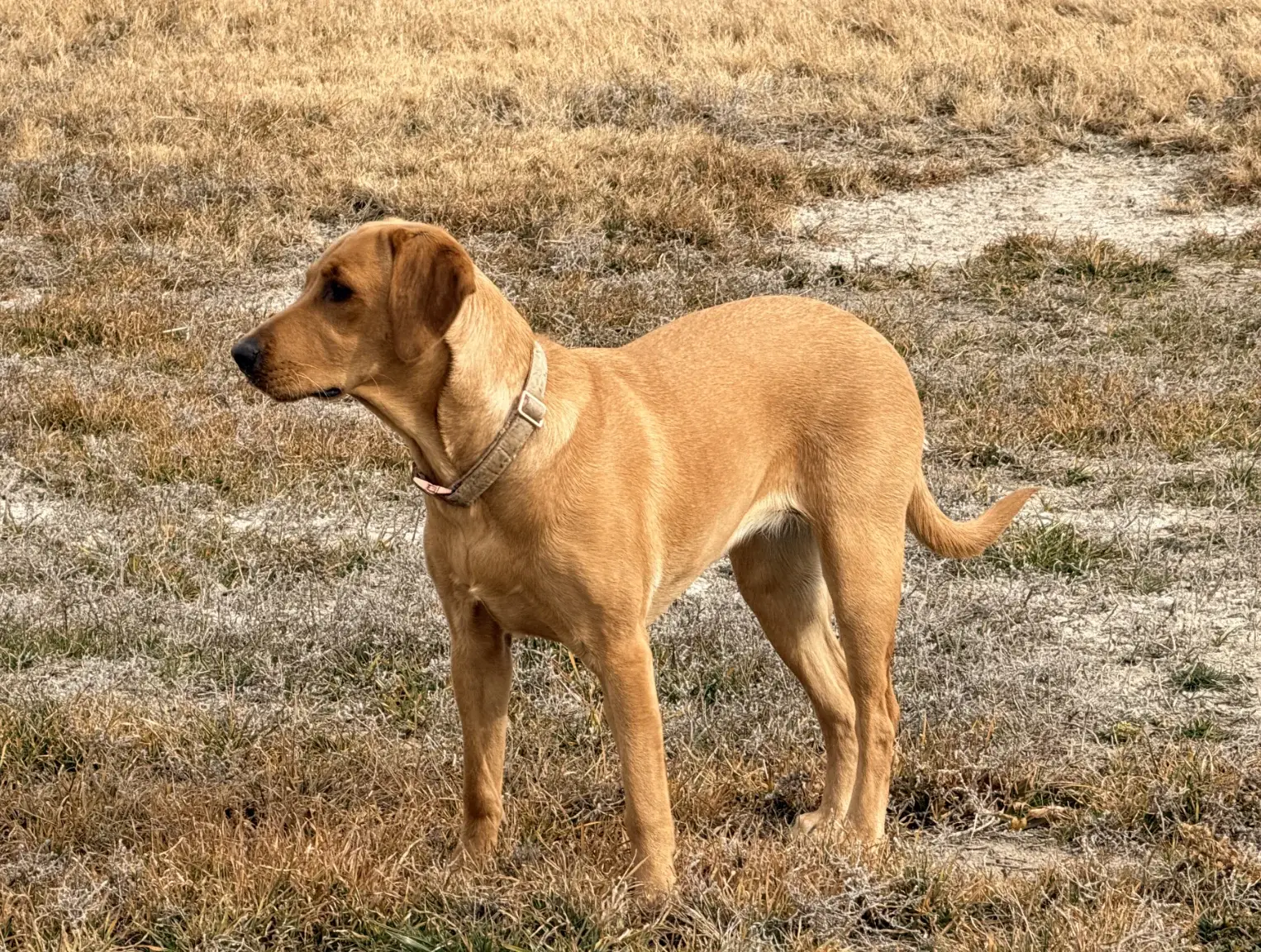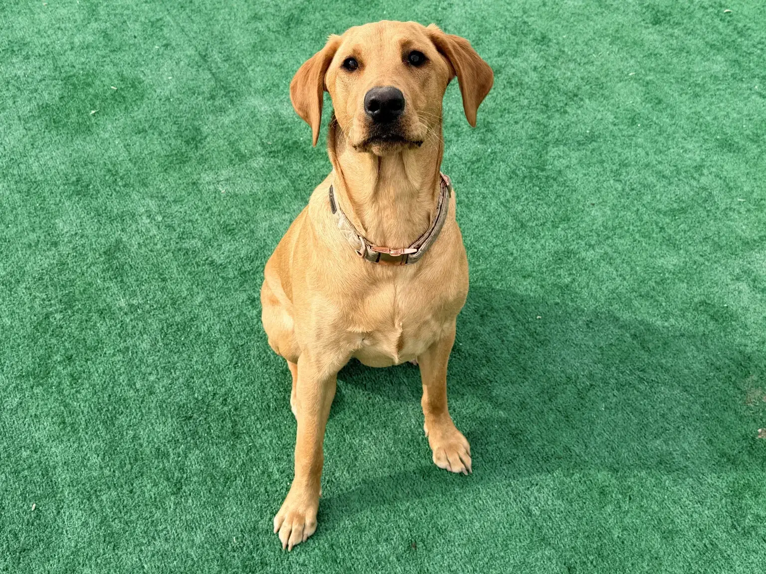 Lainey is a classic American Labrador with a slender, athletic build, a narrower snout, and long, floppy ears that seem to bounce wherever she goes. She is graceful, quick on her feet, and always ready for the next adventure.